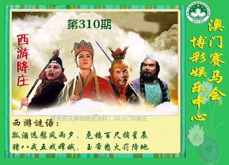 310期西游记: 瓢酒远慰风雨夕,危楼百尺摘星辰 猪八戒五戏嫦娥,玉帝怒火罚降地 解析:风解风肖-虎兔龙;雨解雨肖-蛇马羊。楼解木肖-虎兔;百解百岁猴;摘解商贾猪;星解鹊桥相约的牛郎织女;辰解辰龙,猪八戒解猪,五戏解得五岁牛;地解得地肖 综合七肖:虎兔龙猪牛鼠猴 综合五肖:虎兔龙猪牛 综合三肖:虎兔龙 |